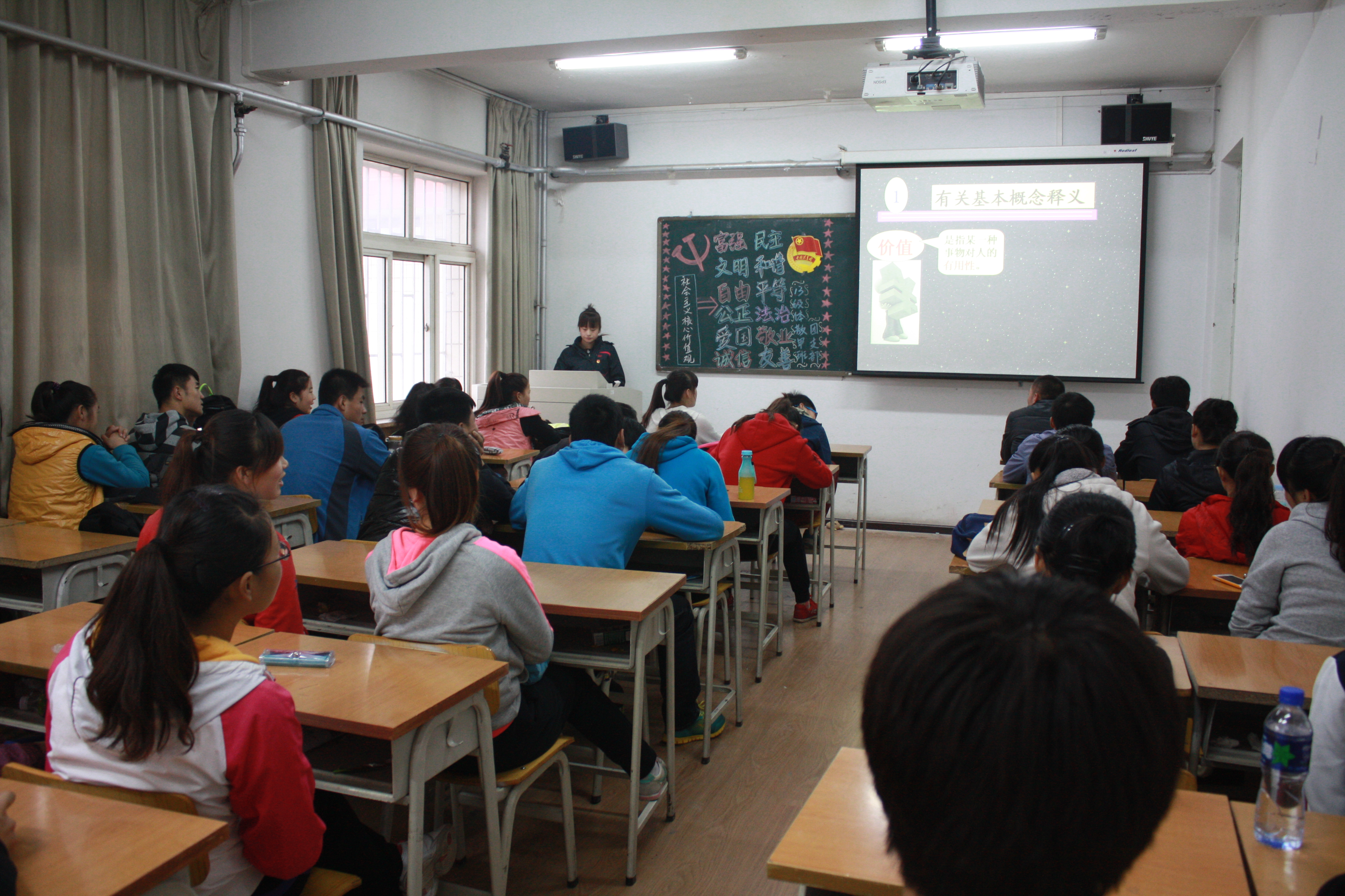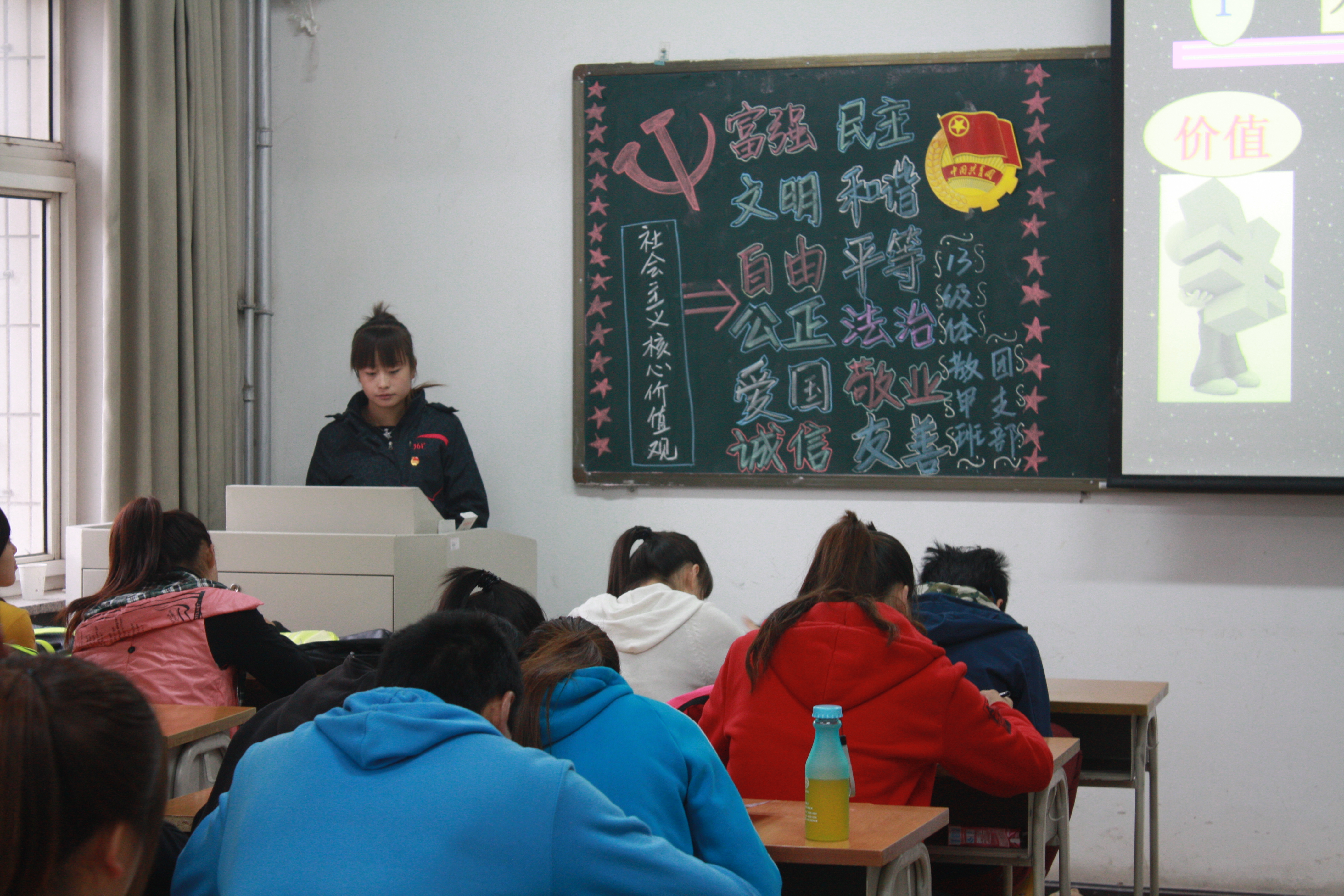 活动开展前同学们有组织的佩戴团徽,齐唱团歌。经过该班团支部书记的精心策划,活动开展的有声有色。此次活动不仅展示了社会主义核心价值观的思想道德风尚,还提高了同学们的思想素质。活动以PPT,图片,板报等多种形式来表达主题思想。活动过程中同学们的积极性极高,在互动提问的环节中,体育教育1班的同学们积极发言,各自表达了对社会主义核心价值观的理解和认识。