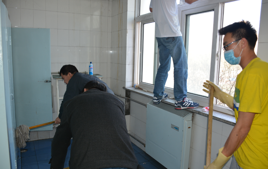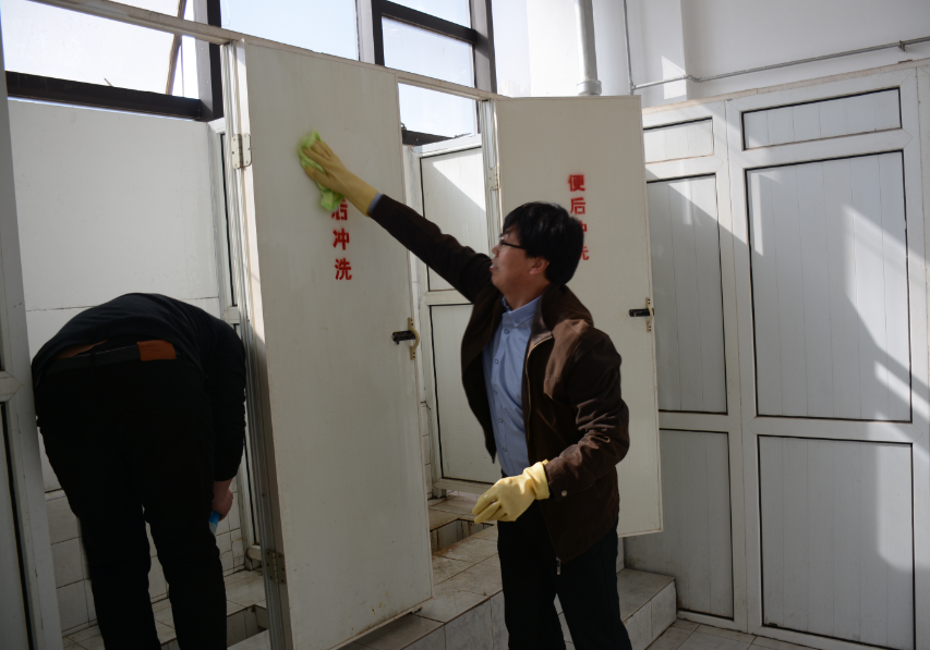 13日下午,学院领导班子成员、全体行政教辅人员与学生代表集中清扫了学院教学楼、各场馆及卫生间。