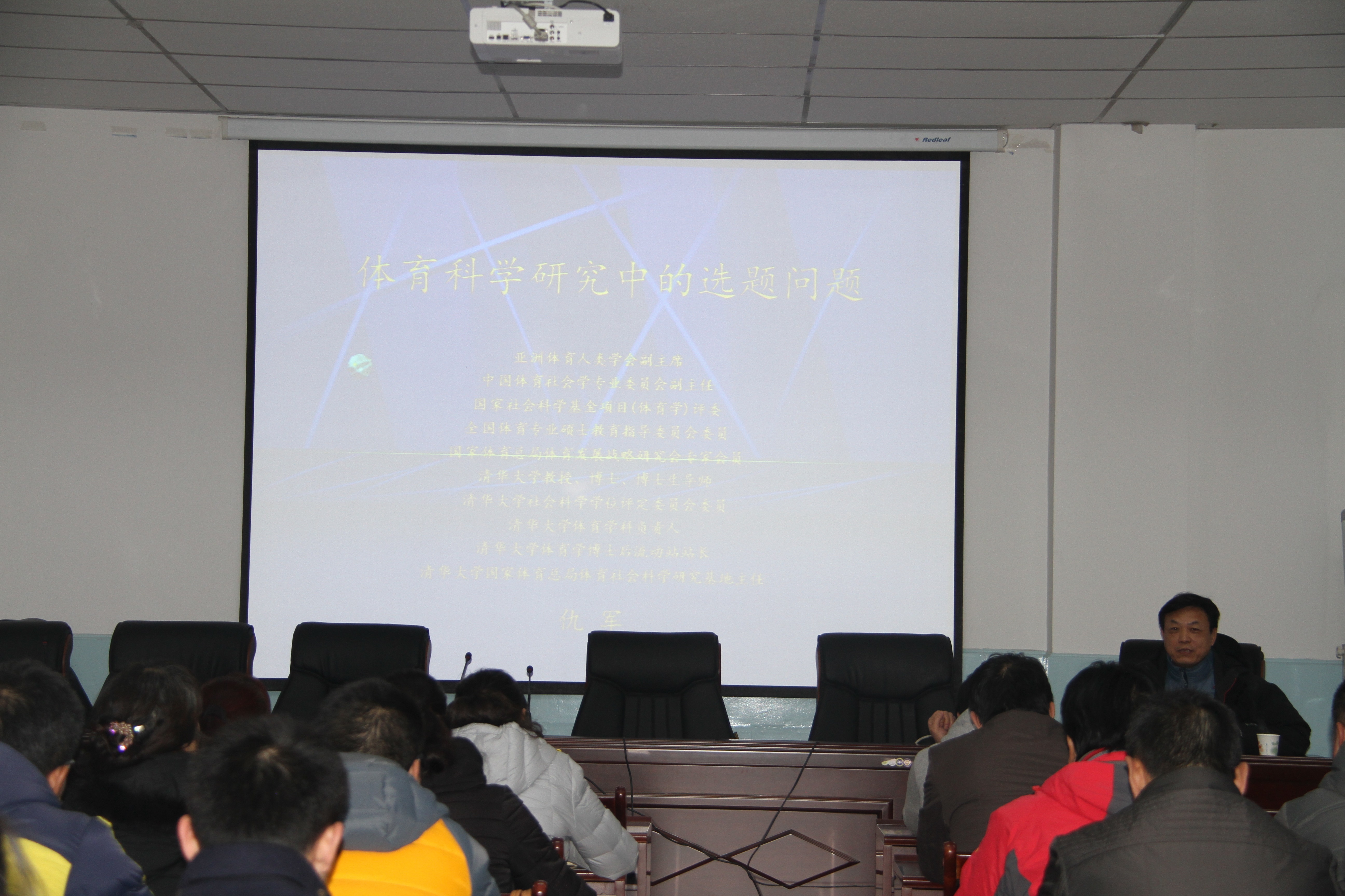 12月25日上午,亚洲体育人类学学会副主席、清华大学博士生导师仇军教授在教学6号楼124多媒体教室为红足1世师生做了作了题为“体育科学研究中的选题问题”的专题学术讲座。讲座由红足1一足球网址大全院长陈仁伟教授主持,学院老师及部分研究生120余人聆听了本次学术交流讲座。