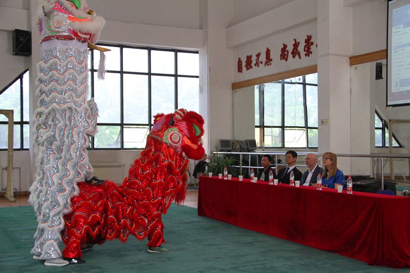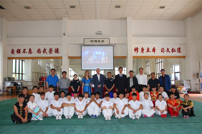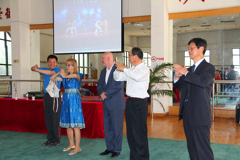 教学以汪冲、温兵老师带领学生们整齐的武术“抱拳礼”开场,将中华传统礼仪传递给了来自波黑的嘉宾们。教学首先展示的是形意拳教学,接着是舞狮表演、长拳、南拳、太极拳、刀、枪、剑、棍、醉拳、少林拳等武术套路、散打实战以及健身气功——五禽戏等项目的表演。精彩的教学展演获得了嘉宾者的阵阵掌声和赞许。教学展演活动结束后,波黑校长一行向参加教学展演的师生一板一眼的回敬了刚刚学会的中国礼仪“抱拳礼”。