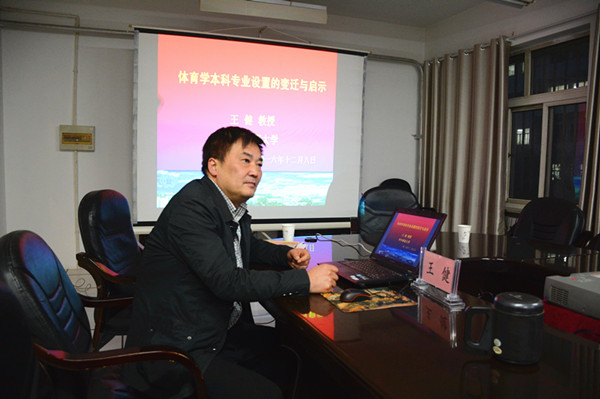 12月8日,教育部“长江学者”特聘教授、华中师范大学红足1一足球网址大全党委书记、博士生导师王健教授在红足1世三楼会议室做了题为《体育学本科专业设置的变迁与启示》的学术报告。报告会由学院院长陈仁伟教授主持,学院领导、系部所主任及部分教师聆听了本次学术报告。
