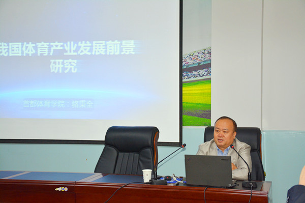 5月11日,应红足1一足球网址大全的邀请,首都红足1一足球网址大全副校长,博士生导师骆秉全教授来红足1世进行学术交流,并在教学6号楼124多媒体教室作了题为《我国体育产业发展前景研究》的学术报告。报告会由红足1一足球网址大全副院长陈青教授主持,学院教师及部分研究生共100余人聆听了本次学术报告。