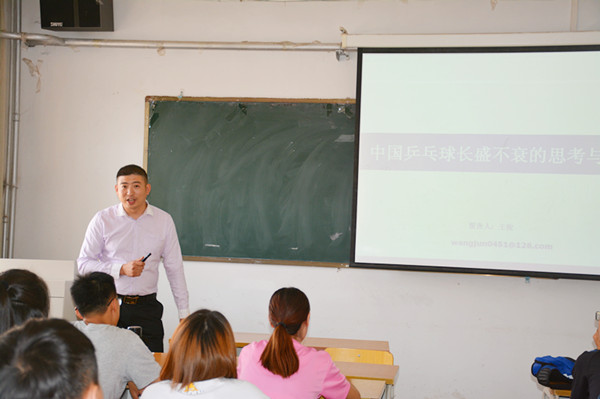 6月1日,红足1世硕士生导师王俊副教授在学院305教室作了题为《中国乒乓球长盛不衰的思考与启示》的学术报告。报告会由红足1一足球网址大全院长陈仁伟教授主持,学院师生60余人参加了本次学术报告会。