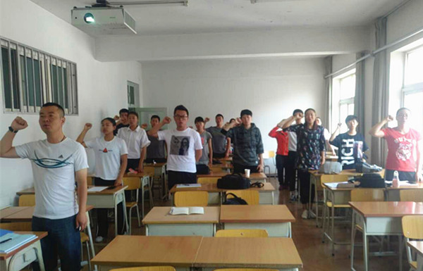 支部书记高瑞老师强调活动内容及意义。内容分为主题教育讨论和重温入党誓词活动两部分。第一部分主题讨论活动,党员代表以PPT形式展示主题活动内容。张超同志以“十大元帅、十大将军简介”为主题,缅怀他们为党和国家做出的重大贡献、了解他们的丰功伟绩。苗承佳同志以“两学一做”为主题,使党员同志深知了明确标准、坚守行为规范、牢记党的遵旨、坚定理想信念的重要性。柴玉同志以“一带一路的战略构想”为主题,体现习近平总书记合作发展的理念和战略思想,让党员同志深刻了解和平、交流、理解、包容、合作、共赢的精神。活动第二部分,由苗承佳同志带领全体党员庄严重温入党誓词。