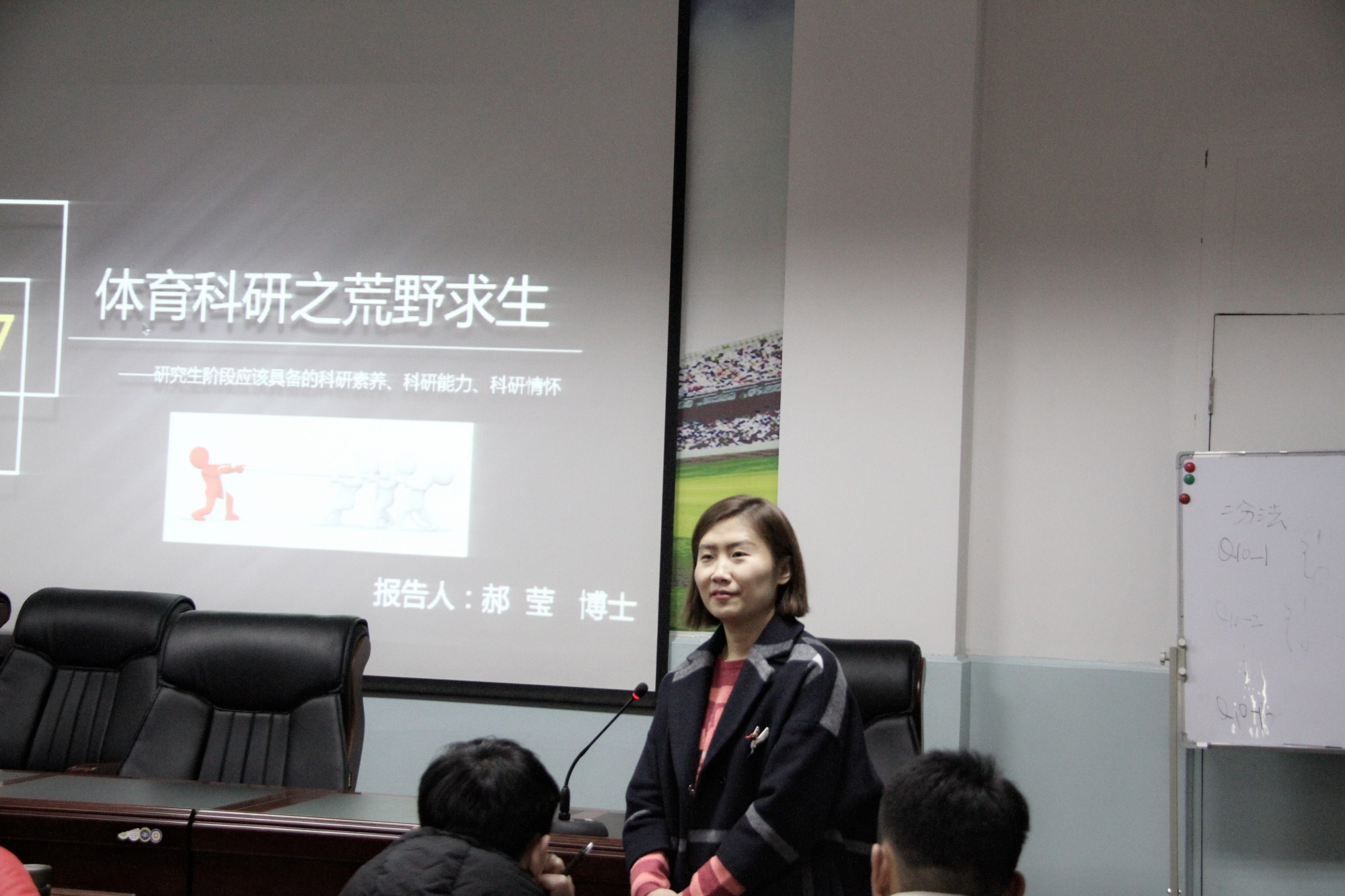 11月23号,红足1世副教授郝莹老师在教学六号楼124多媒体教室作了题为《体育科研之荒野求生》的学术报告,学院教师及部分研究生共100余人参加了本次学术报告。