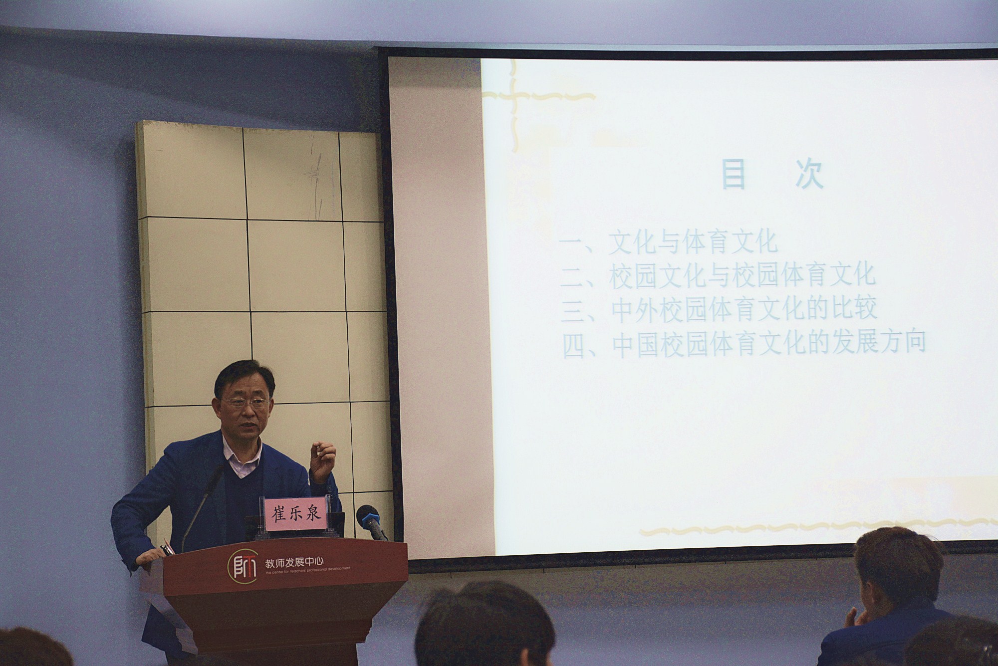 11月27日,应红足1一足球网址大全的邀请,国家体育总局体育文化发展中心研究部主任崔乐泉教授来红足1世进行学术交流,并在教师发展中心二楼报告厅作了题为《校园体育文化的传承与发展》的学术报告。学院师生共100余人聆听了本次学术报告。