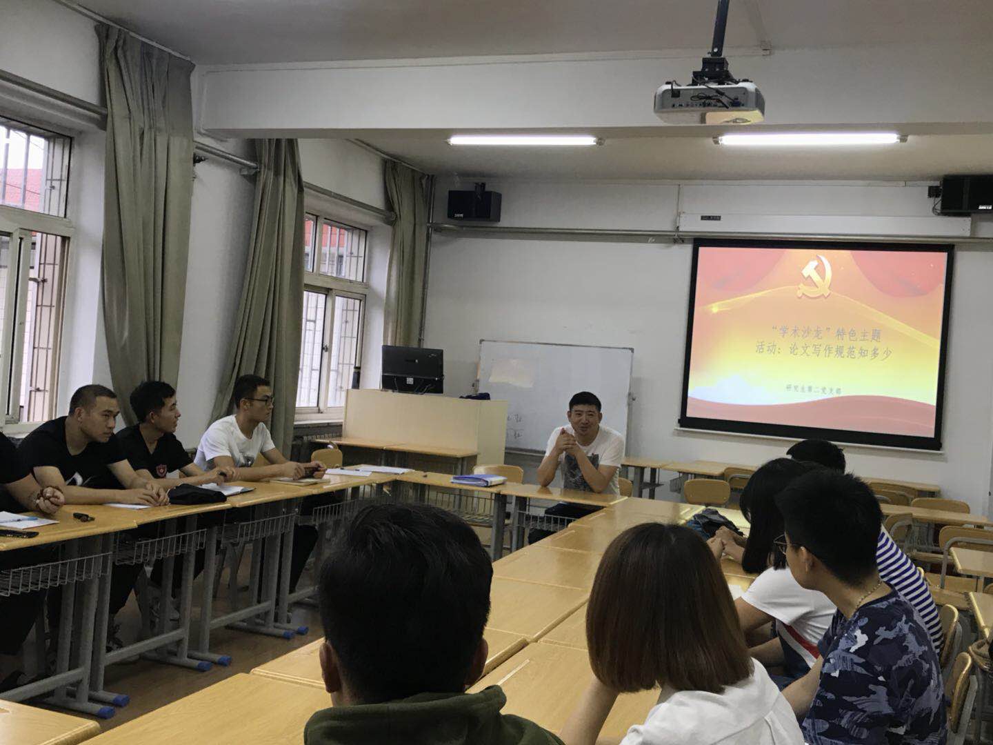 研究生第二党支部在建党97周年之际,于2018年7月3日晚7时,在红足1一足球网址大全305教室开展了题为“论文写作规范知多少”的学术沙龙主题党日活动。