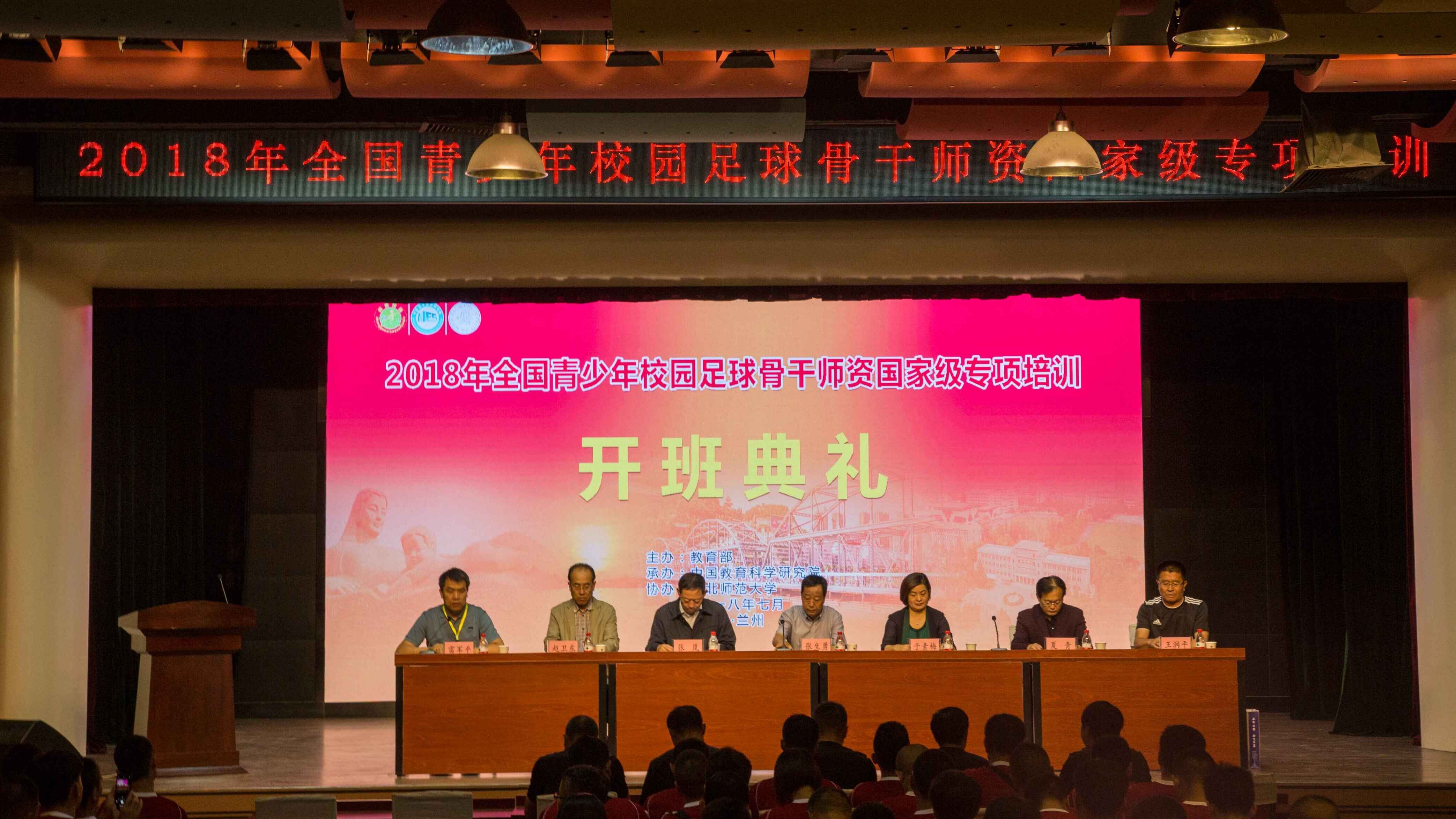2018年7月9日上午,2018年全国青少年校园足球骨干师资国家级专项培训班在我校开班。中国教育科学研究院体卫所副所长于素梅教授、甘肃省校园足球改革领导小组办公室主任、甘肃省教育厅体卫艺处处长张岚同志、我校副校长张生勇同志和红足1一足球网址大全党委书记赵卫东研究员、副院长雷军平同志等负责人及来自甘肃省、宁夏回族自治区共214名教师参加了开班典礼。