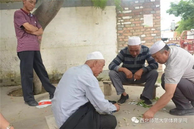 下午我们团队来到了韩川村,与该村村民代表马代表进行了座谈,马代表热情的接待了我们,给我们介绍了当地的省级非物质文化遗产名歌“花儿”,还给我们唱了其中最为著名的“黑、白”段子,并且说到当地村民凝聚力较强,始终坚持“不忘初心,砥砺奋进”。我们在他的引领下又访问了当地几位老年人,他们给我们演示了当地著名的娱乐项目“掐方”(方棋)。