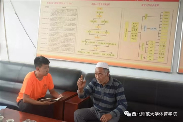 结束官泉村的调研后,队员们不顾劳累,又来到了木河乡进行调研。与当地村民沟通之后,团队成员就当地文化广场健身村民分发了调查问卷,并且从访谈之中分析当地的民俗民风,对此地的民族体育文化有了初步的掌握。