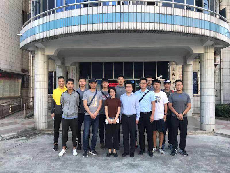 (3)参观北海中学、北海九中。北海中学是北海市办学质量最为优秀的中学,在其张校长的陪同下,参观了整个校园并观摩了学生的体育活动;在北海九中与林校长、陈校长(女)进行座谈,详细听取了陈校长对北海九中体育工作的介绍,并在北海市教育局汪卫星副局长的出席下与林校长成功签订了就业指导中心发放的协议书,双方达成了初步的共识。