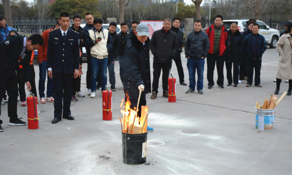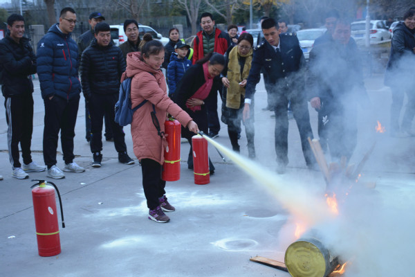 讲座结束后,漆教官带领师生在体育馆南侧的空地现场演示了灭火器的正确使用方法,让大家对消防安全知识有了更直观的了解,现场各位老师和同学积极参与到演练中,充分提高师生对消防安全灭火技巧的掌握。