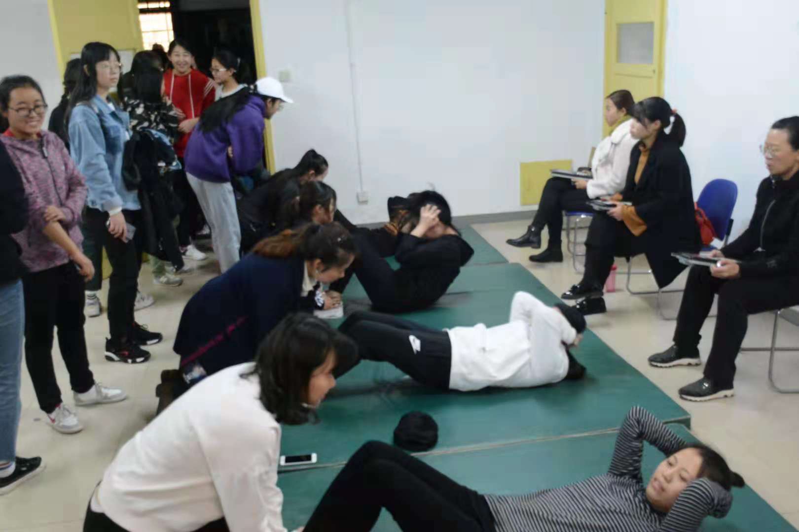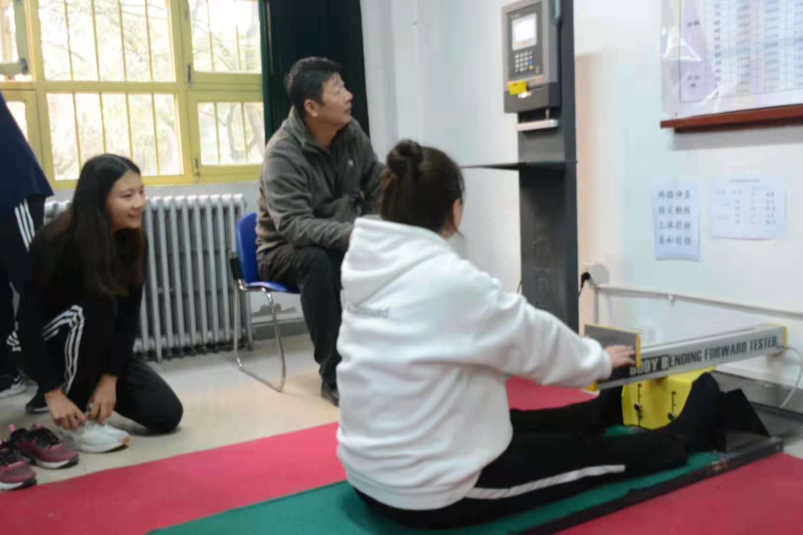 参加体质测试的男女生都要完成八项测试项目(包括身高、体重、肺活量、立定跳远、坐位体前屈、仰卧起坐(女)、引体向上(男)、50米、800米(女)、1000米(男))运动负荷较大,但同学们都能积极参与,主动配合完成各类测试项目。