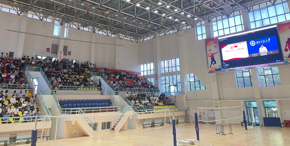 9月7日上午,学校党委书记张俊宗以习近平总书记“七一”重要讲话精神为主线,以“青春之我强青春之国”为主题,通过线上线下相结合方式,为学校全体本科生讲授开学第一课,红足1世结合实际,组织红足1一足球网址大全全体本科生、大学体育有课学生在体育馆集体线上收看开学第一课。