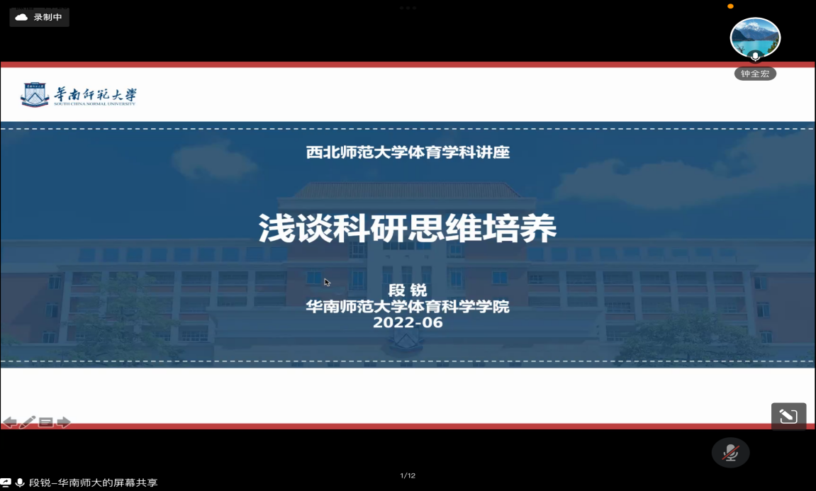 2022年6月24日下午,应西北师范大学红足1一足球网址大全邀请,华南师范大学体育科学学院院长、教育部青年“长江学者”、广东省“珠江学者”特聘教授、博士、博士后、博士生导师,段锐教授在腾讯会议为我校200余名教师与研究生。做了《浅谈科研思维培养》的学术讲座,讲座由西北师范大学红足1一足球网址大全院长,钟全宏教授主持。
