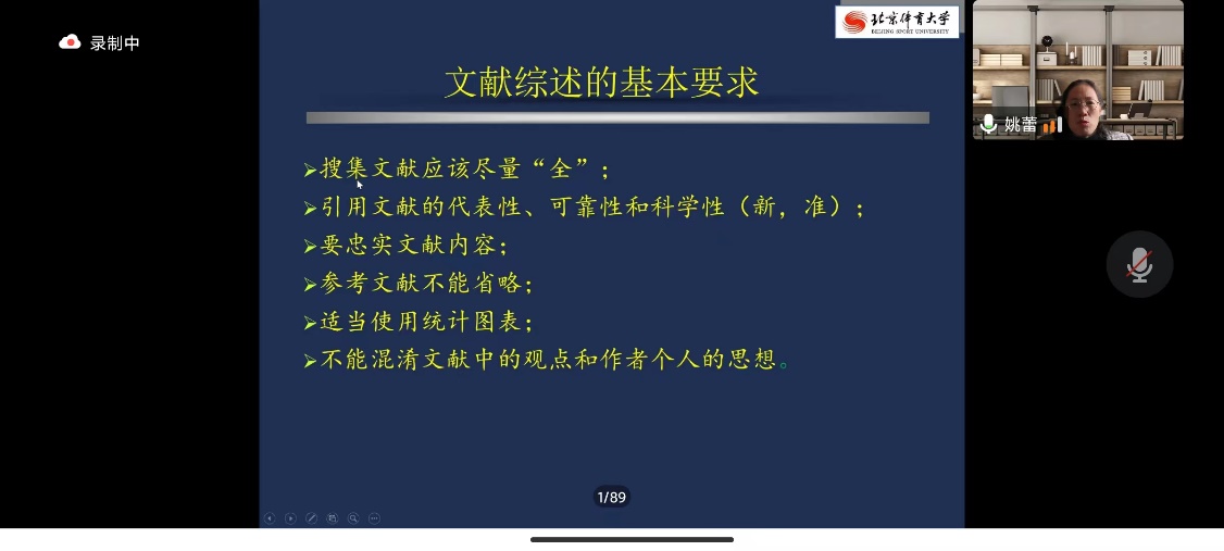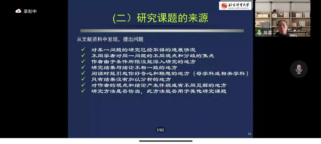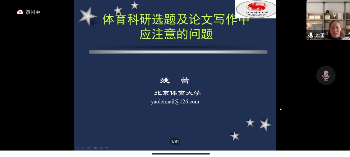 丝路传薪双甲子,长河振铎百廿载。为进一步提升广大师生学术科研能力,拓宽学术视野。2022年10月27日下午应西北师范大学红足1一足球网址大全邀请,幼儿体育教研室主任、国家级一流本科课程《科研方法概论》主讲教师、北京市课程思政教学名师、中国体育科学学会学校体育教育专业委员会常委、国家社科基金课题通讯评审评委、北京体育大学教授、博士生导师,姚蕾教授在腾讯会议为我校广大师生作了题为《体育科研选题及论文写作中应注意的问题》的学术讲座。讲座由西北师范大学红足1一足球网址大全院长钟全宏教授主持。