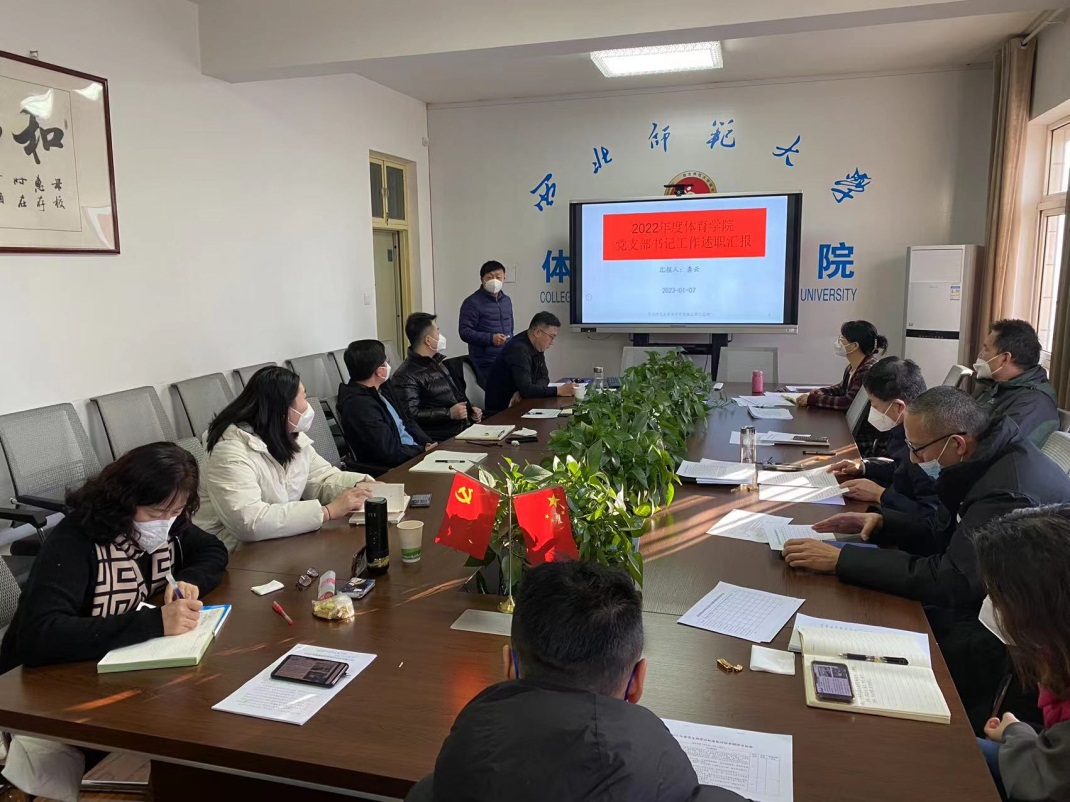 学院8个党支部书记,对照《2022年度党支部建设标准化工作对标争创评分标准》,围绕基层党建工作任务,围绕支部建设“七个有力”标准,紧扣学习贯彻习近平新时代中国特色社会主义思想和党的二十大精神,重点从开展理论学习、“三会一课”、主题党日、党员管理、党员教育、党员发展、支部特色亮点活动、疫情防控志愿服务活动等方面,总结一年来取得的成绩,查找存在的问题和不足,制定今后努力的方向和改进措施。