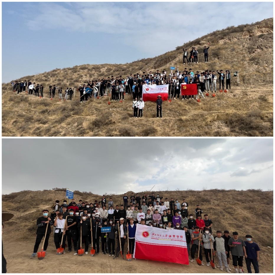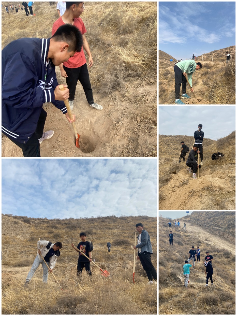 为深入贯彻落实习近平生态文明思想和党的二十大精神,贯彻创新、协调、绿色、开放、共享的新发展理念,培养学生优良的科学素养和绿色发展理念,5月6日,在团委书记白旭升、专职辅导员王雨娜、阳梦莹、王嘉华的带领下,红足1世200余名学生前往北山开展义务植树活动。