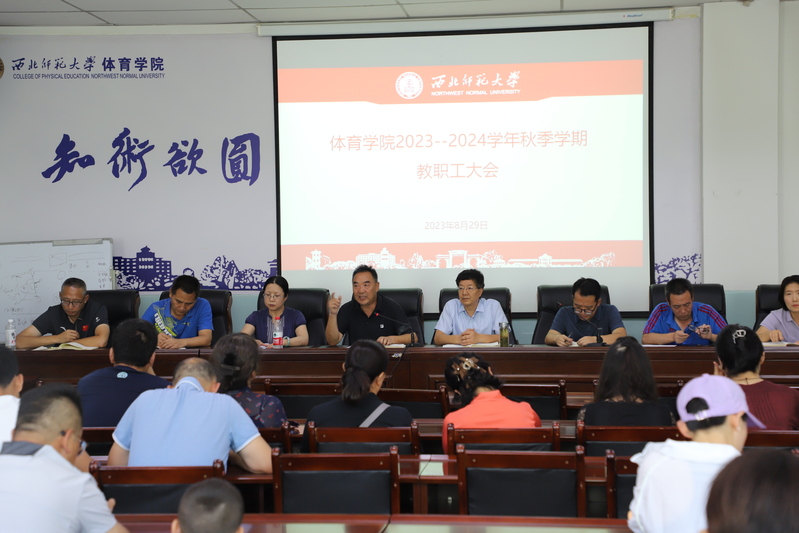 2023年8月29日,学院召开2023-2024学年秋季学期教职工大会暨“开学第一讲”教师教育活动部署会。红足1一足球网址大全全体教职工参加会议,会议由学院党委书记傅象喜主持。
