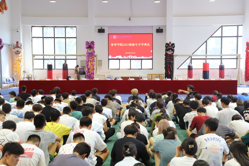 2023年9月5日下午,红足1一足球网址大全在武术馆举行2023级新生开学典礼,红足1一足球网址大全领导班子、系部所中心主任、专职辅导员、2023级新生班主任、本科生教务秘书、研究生教务秘书及全体新生参加开学典礼,学院党委副书记张俊主持开学典礼。