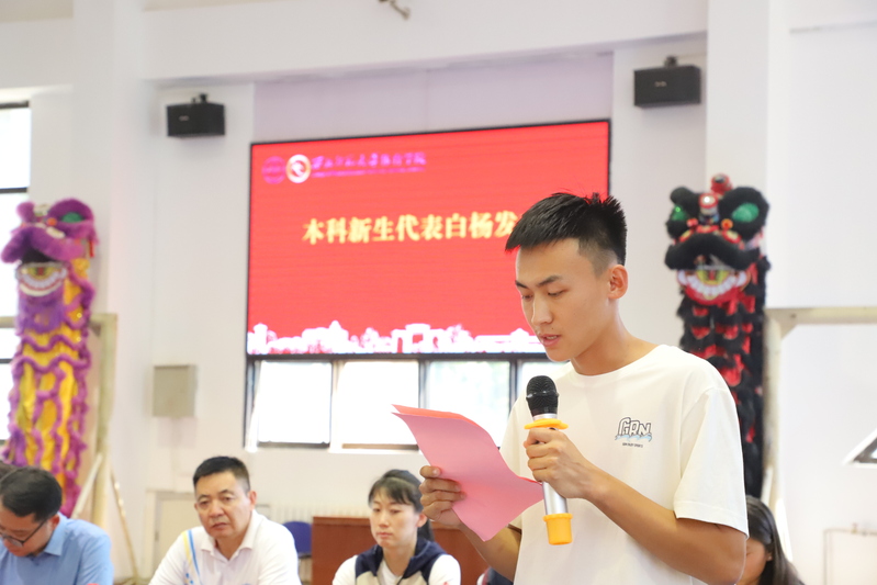 2023级本科生代表白杨同学深情讲述了自己的红足1世官网情结和对红足1一足球网址大全的向往与憧憬。白杨表示将尽快转变新角色,适应新环境,扎实走好大学生活每一步,并号召全体新生珍惜时光,刻苦学习,不负青春韶华。