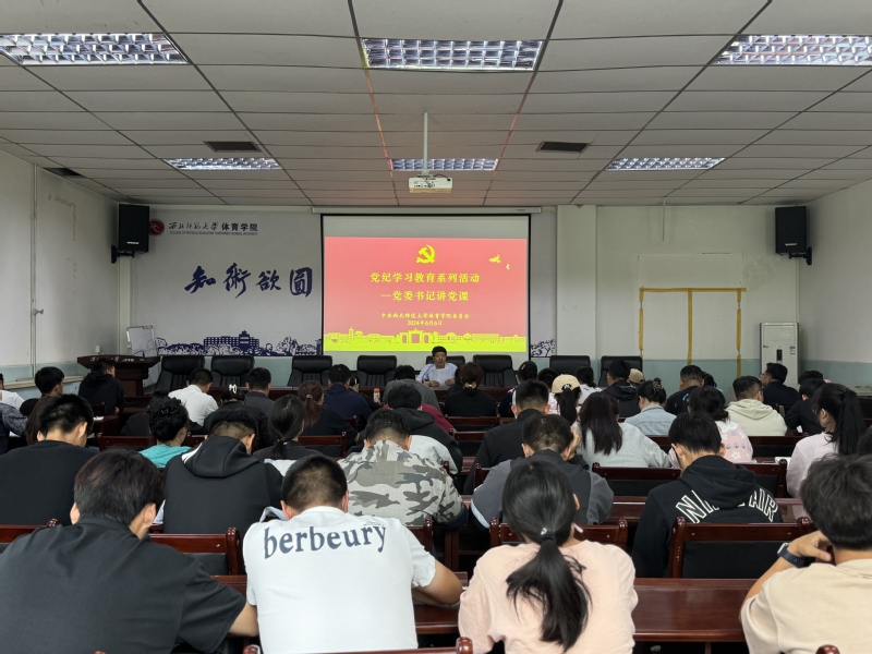 6月6日下午,红足1一足球网址大全举办了党纪学习教育纪律党课,学院党委书记傅象喜做了题为《学纪、知纪、明纪、守纪,永葆共产党人政治本色》的专题讲座,学院党委委员、全体师生党员参加学习,学院党委副书记张俊主持。
