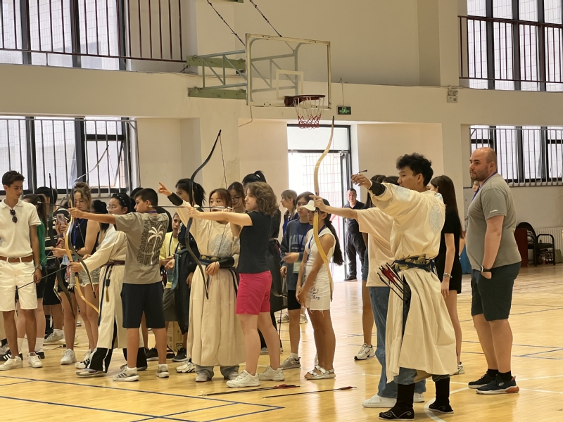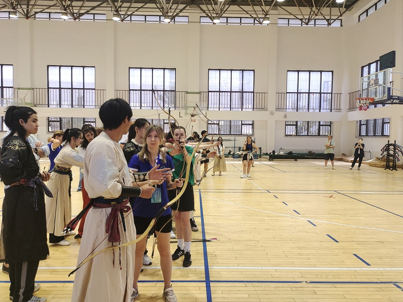 表演结束后,访问团的成员们不仅聆听了关于射箭历史与技巧的讲解,还迫不及待地尝试了亲手拉弓射箭。在正己弓社成员的悉心指导下,他们手握弓箭,拉弦时,手臂微微颤抖,却又努力保持稳定;放箭时,神情紧张又充满期待。每一次尝试,都仿佛是在与古老的技艺进行一场深度对话,每一次命中目标,都伴随着惊喜的欢呼和灿烂的笑容,他们尽情感受着这项古老艺术带来的独特乐趣。