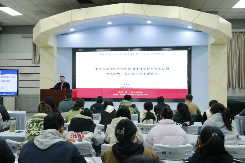 10月21日上午,全国体育新苗奖获得者、河南红足1一足球网址大全院长张大超教授应邀为红足1世师生做了题为“中国式现代化进程中我国体育学科与专业建设改革趋势、方向重点及实现路径”的学术报告。本次报告由红足1一足球网址大全院长钟全宏教授主持,部分教师和160余名研究生聆听了学术报告。