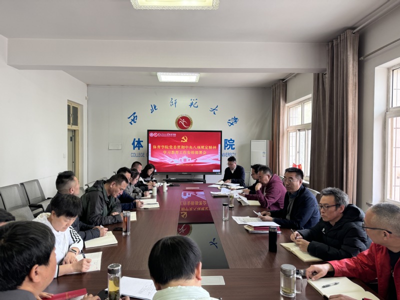 会上,传达学习了中央党的建设工作领导小组会议精神、中共中央办公厅《关于在全党开展深入贯彻中央八项规定精神学习教育的通知》、省委党的建设工作领导小组会议精神,学习了《西北师范大学开展深入贯彻中央八项规定精神学习教育工作方案》,明确了学习教育的目标任务、时间安排和工作要求。