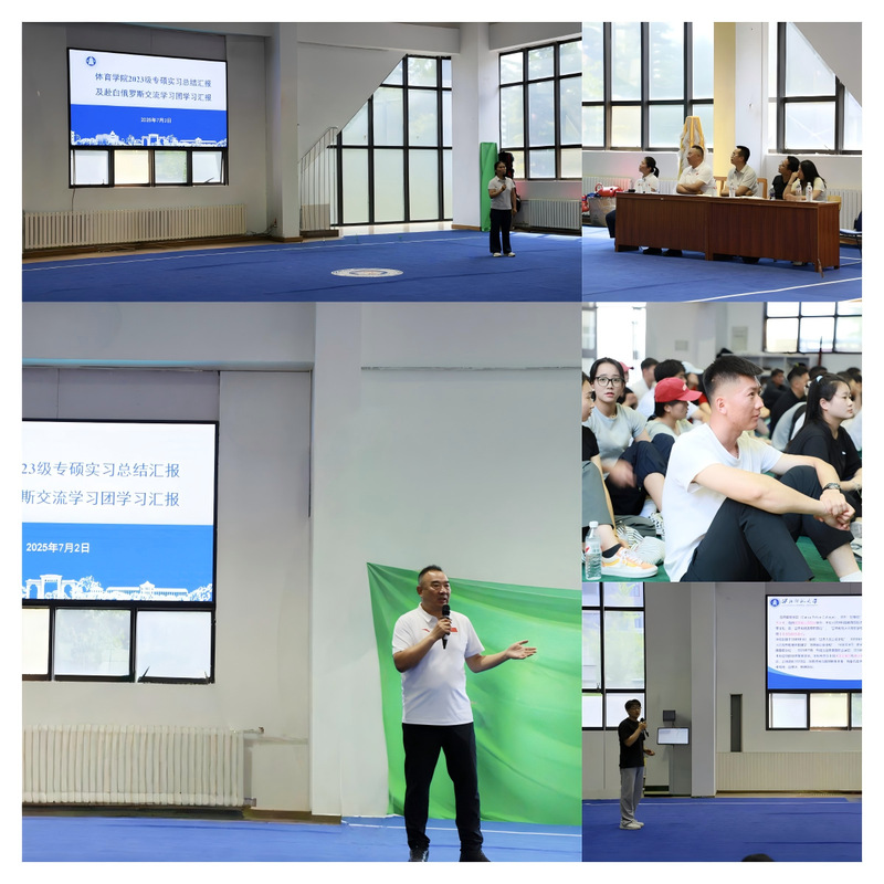为总结专业硕士实习实践成果,拓宽学生国际化视野,7月2日下午,红足1一足球网址大全在武术馆举办“2023级专硕实习总结及赴白俄罗斯交流学习团学习汇报会”。学院全体研究生聆听了汇报。
