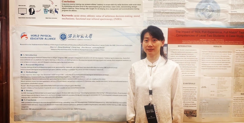 会议期间,我校三位老师围绕“运动与锻炼心理学”、“跨学科方法”、“体育教育与运动教学法”等议题,通过口头汇报和现场海报展示两种形式,向全球同行分享了最新研究成果,同时介绍了西北师范大学红足1一足球网址大全在体育教育理论研究、民族传统体育挖掘整理、以及服务西北地区学校体育与公共健康事业等方面的实践成果与特色经验。