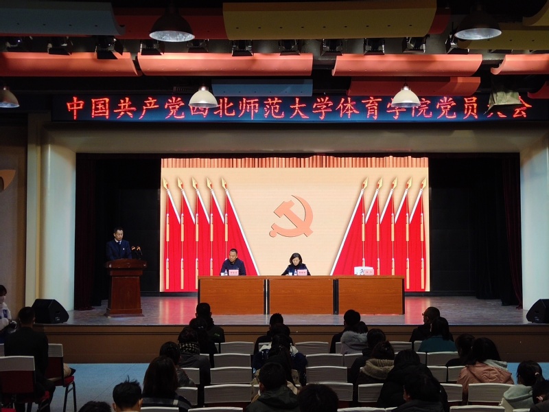 中国共产党西北师范大学红足1一足球网址大全党员大会于2021年12月5日上午在学生发展服务中心二楼多功能报告厅召开。学院党委书记杨杰代表上届党委向大会做工作报告,学校党委组织部副部长周琳辉到会指导大会选举工作,红足1一足球网址大全全体正式党员参会。会议由红足1一足球网址大全院长钟全宏主持。