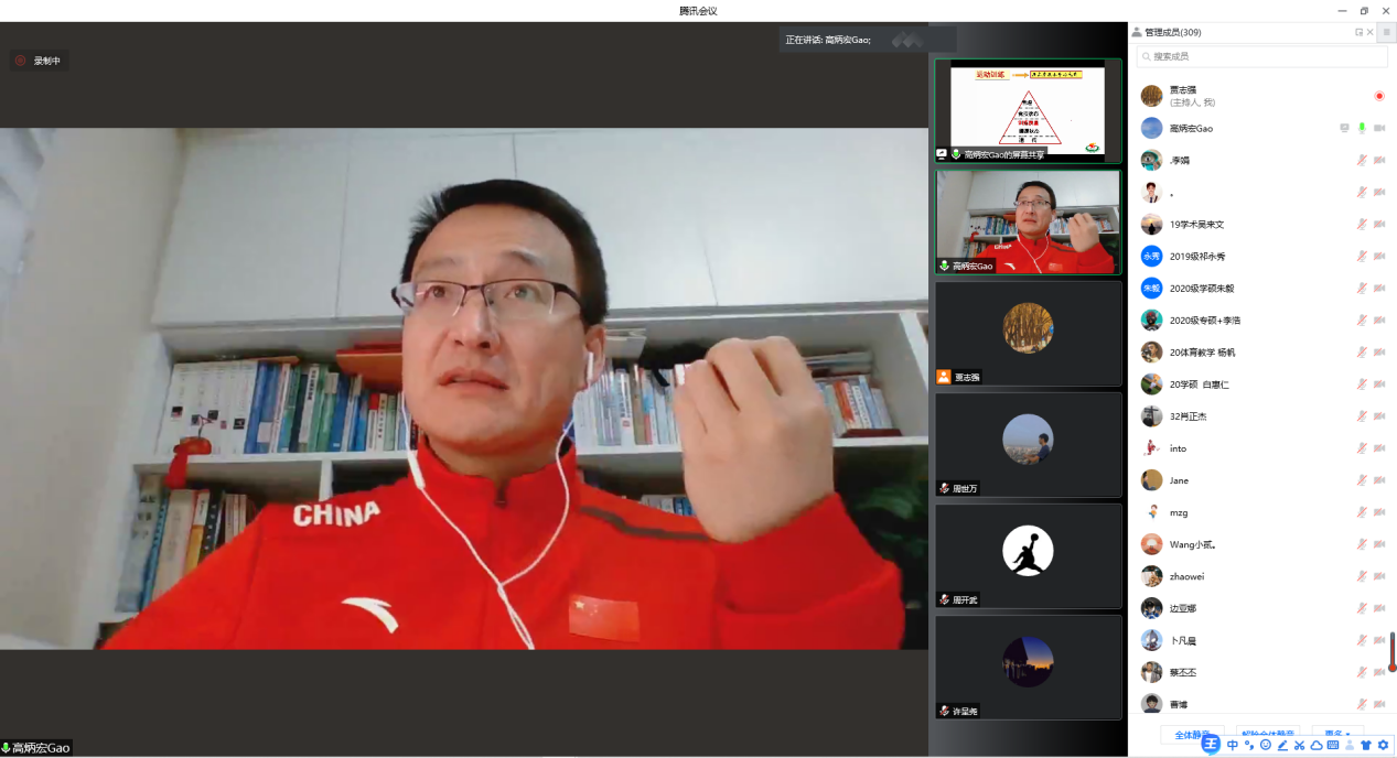 4月19日晚,应红足1世邀请,上海红足1一足球网址大全体育教育训练学院院长、博士生导师高炳宏教授在线作了题为《新时代竞技运动科学发展的思考》的学术报告。红足1一足球网址大全院长钟全宏教授主持了本次讲座,校内外300余人共聚云端,聆听了本次报告。